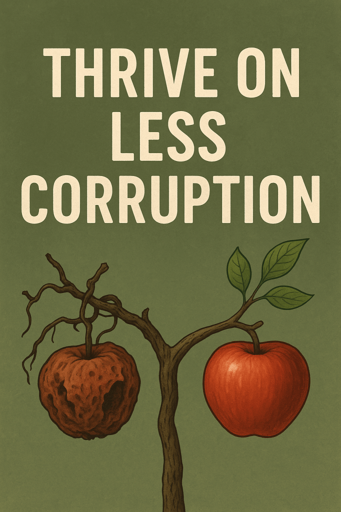 To thrive on less corruption doesn’t mean pretending we can escape it fully in this life. It means refusing to feed it in our choices, our relationships, and our hearts. It means standing against lies, resisting envy, walking away from theft, and striving for honesty in a world addicted to deception. “Do not be deceived: God is not mocked, for whatever one sows, that will he also reap” (Galatians 6:7).