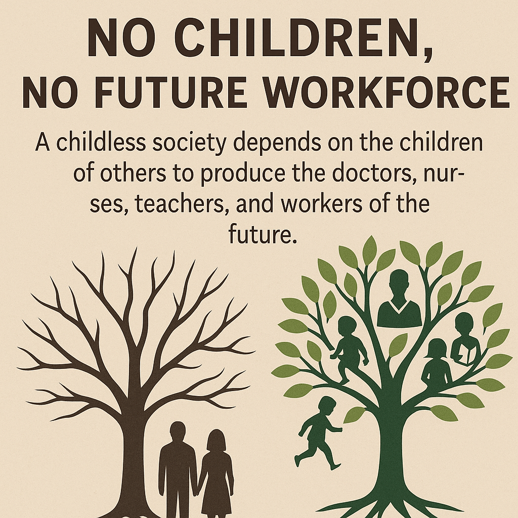 Many choose childlessness for financial freedom, lifestyle, or convenience. But when multiplied across a generation, those individual choices create a collective problem. It is not simply a private matter—it becomes a social question of survival and fairness.